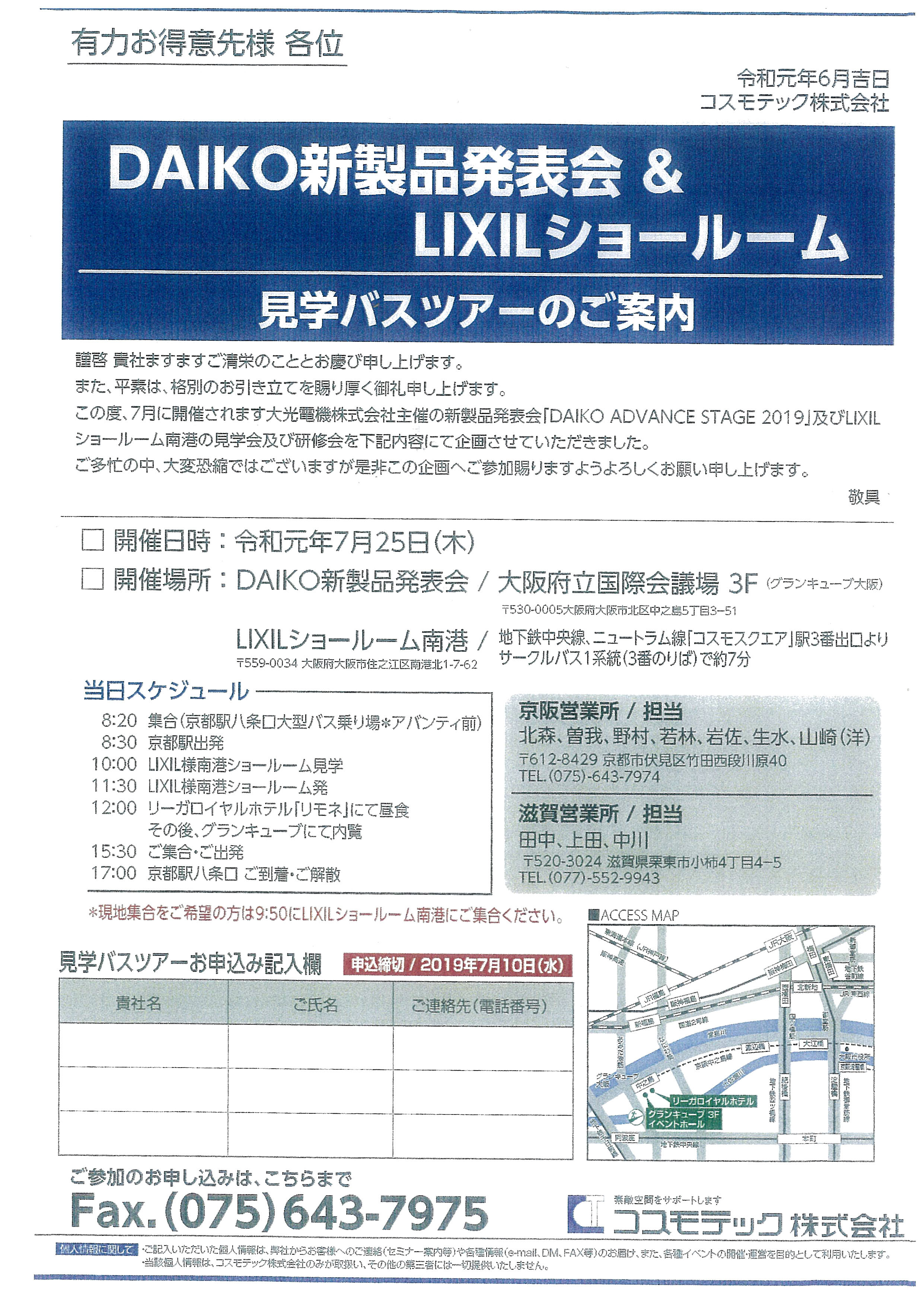 DAIKO新製品発表会&LIXILショールーム 見学バスツアーのご案内